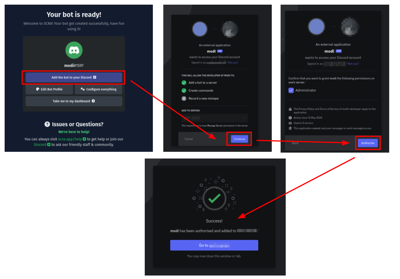 SCNX will now set up hosting for your Modmail and automatically configures the Discord Bot for you.